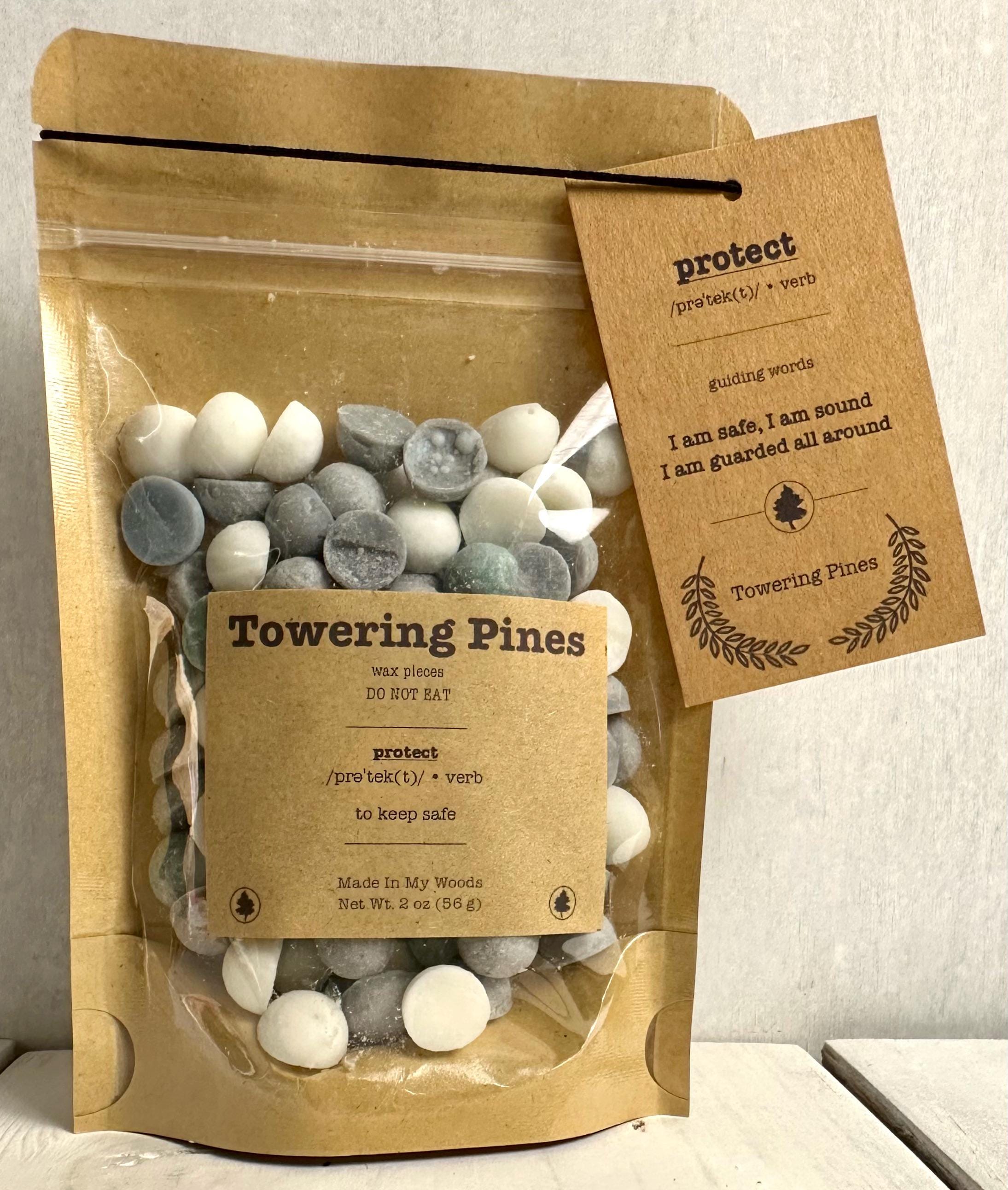 A crisp, resinous blend of fresh pine needles, pinecone, and forest resin, grounded by warm woods and a touch of smoky ember — like standing among tall trees, steady and shielded.