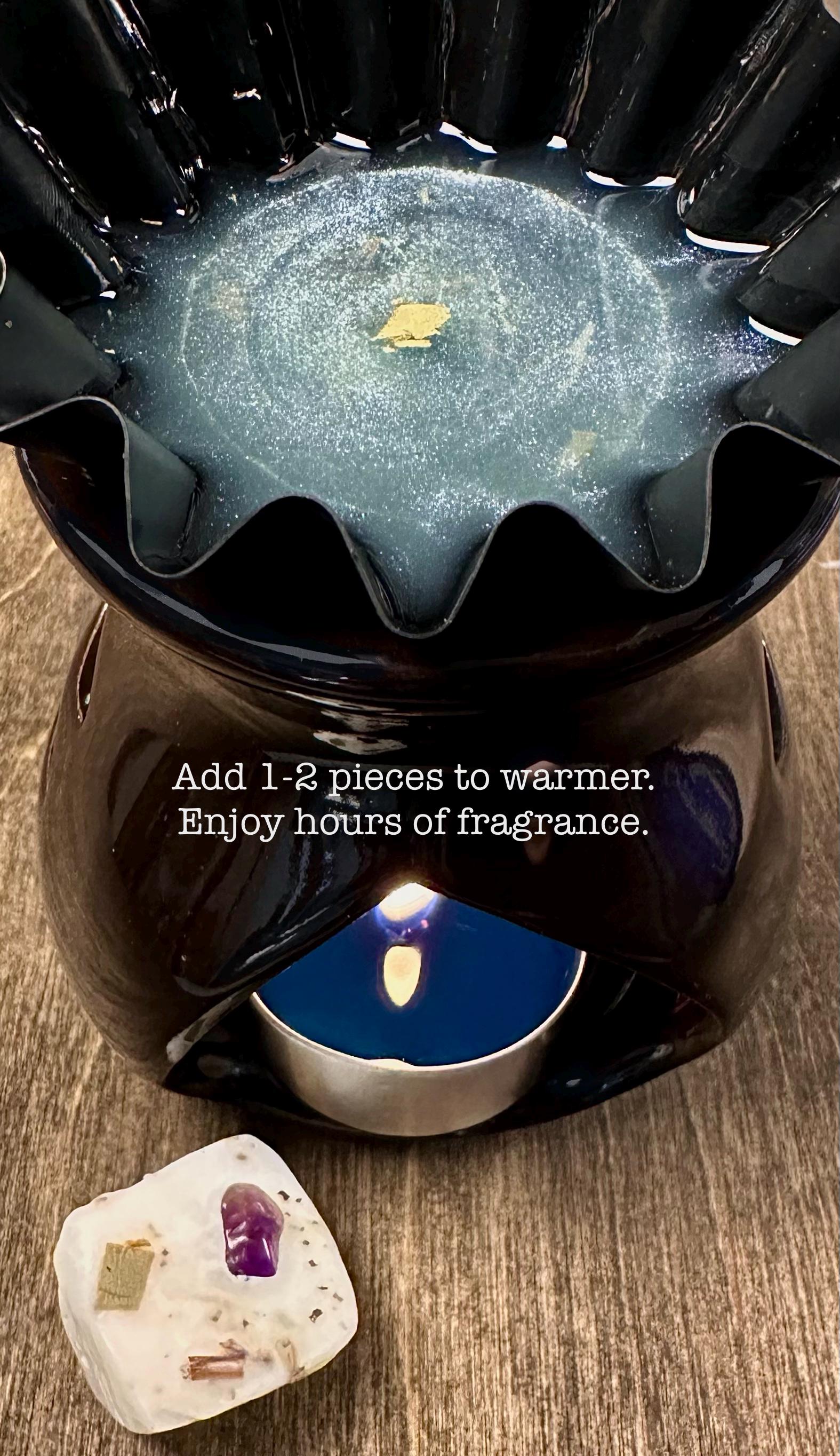Contains decorative herbs and crystals. Use in a wax warmer only. Do not burn directly.
